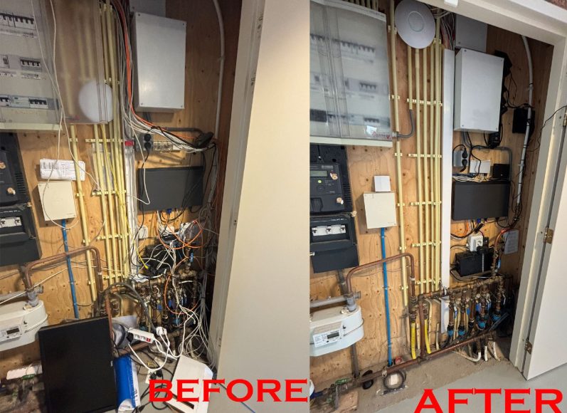 Vaak worden deze in de meterkast geplaatst, waardoor het al snel verandert in een wirwar van snoeren — een echte “spaghetti” van kabels.
